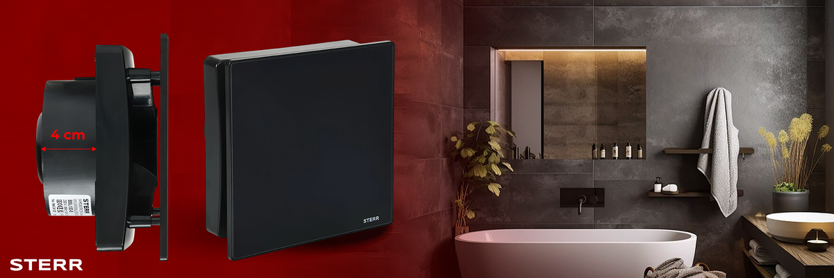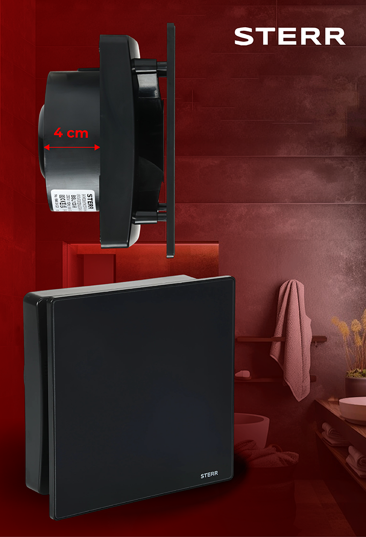 STERR LFS100-QBT - 100 mm Extrator de Casa de Banho, Temporizador, 95 m³/h, Preto