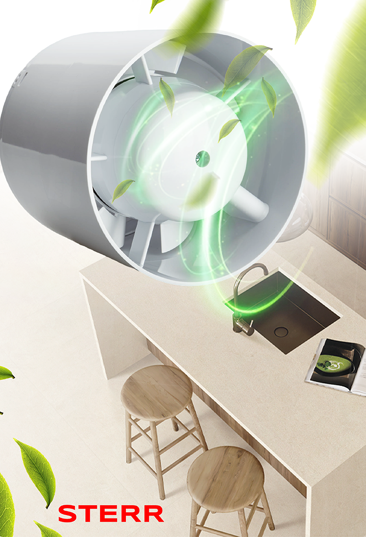 STERR BSL100-B - 100 mm Extrator Compacto, 95 m³/h, Preto