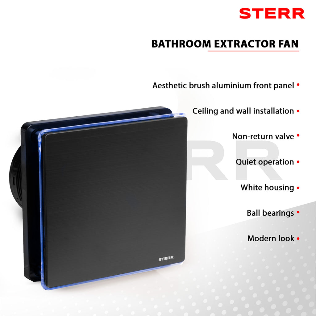 BFS100L-BA – Extrator silencioso com iluminação LED eficiente em energia proporcionando ventilação fiável e ambiente decorativo para casas de banho.