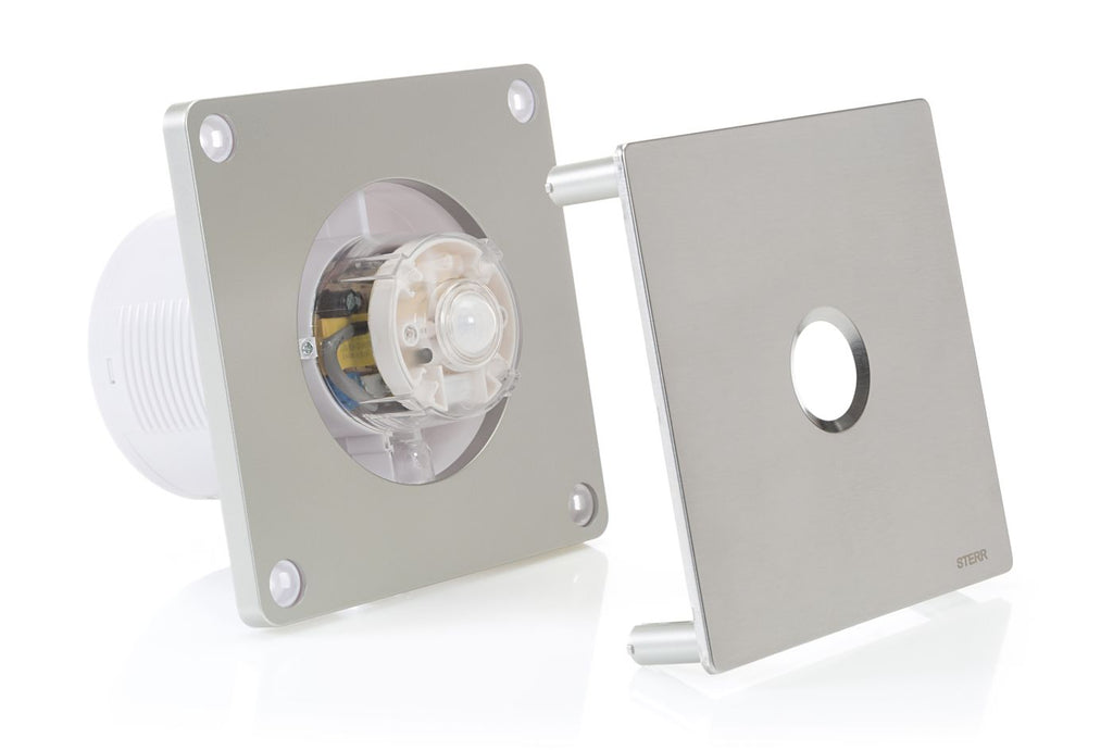 BFS100P-S – Extrator silencioso com sensor de movimento PIR proporcionando ativação automática de ventilação para casas de banho.