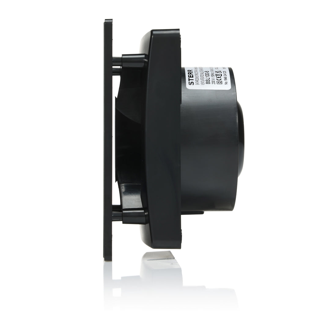 BSL100T-B – Extrator compacto com flange curta de 46 mm, perfeito para cavidades de parede rasas. Proporciona ventilação fiável para casas de banho.