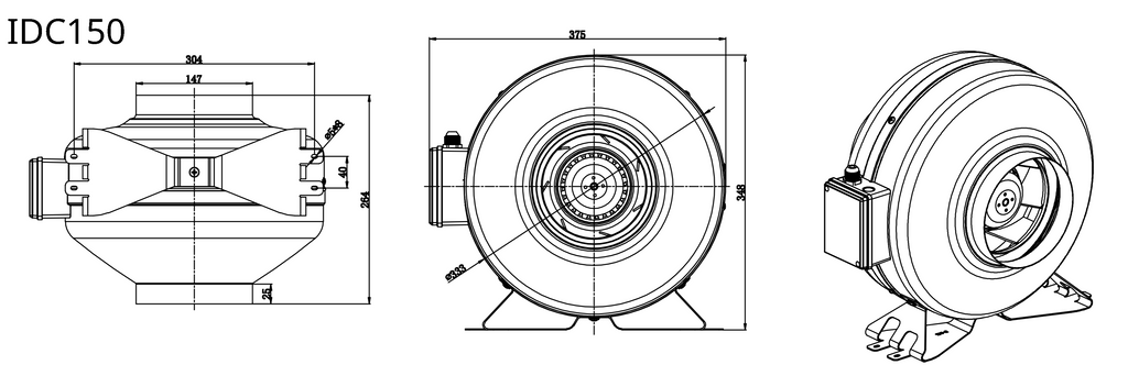 IDC150 – Extrator centrífugo inline de alta pressão para condutas longas.